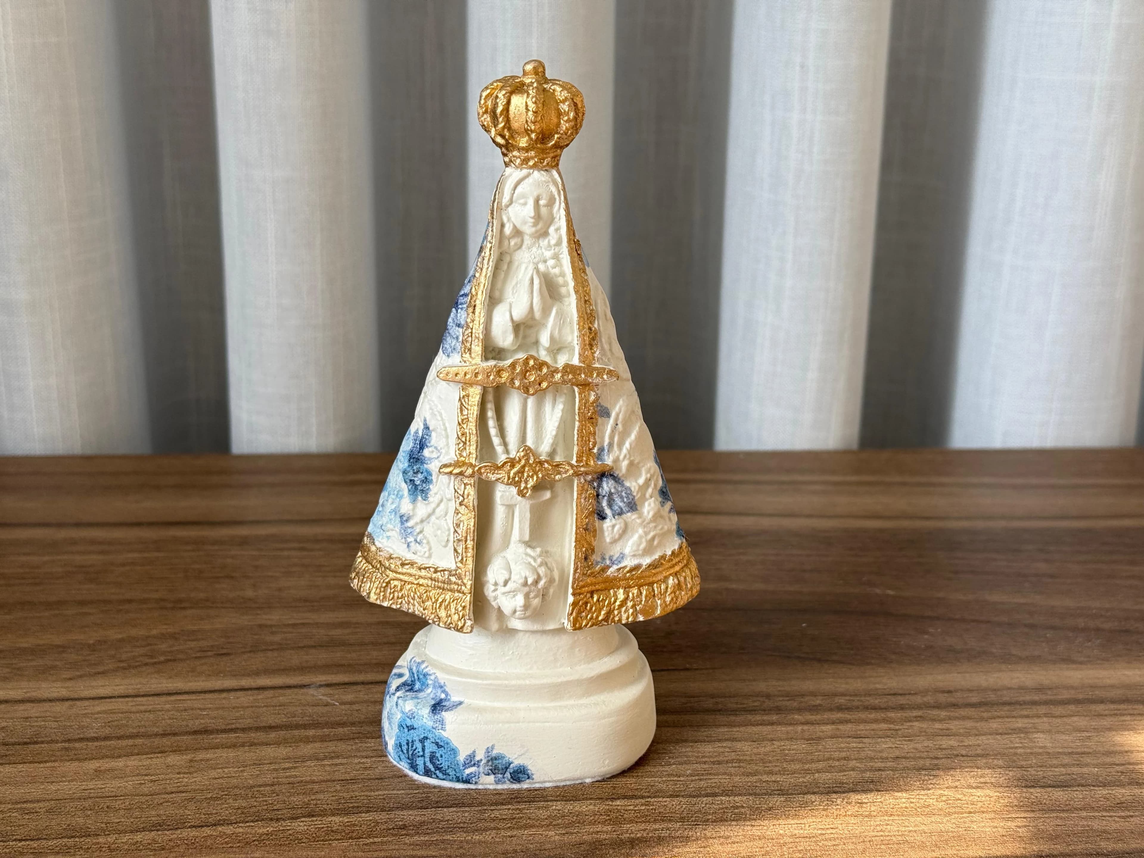 A Mary and Me nasceu do amor pela arte sacra e pela vontade de criar peças únicas que carregam fé e beleza. Cada santa é cuidadosamente moldada e decorada com a técnica de decoupage, usando estampas selecionadas que trazem delicadeza e personalidade. Nossos terços são montados à mão, conta por conta, com materiais de qualidade e muito carinho.